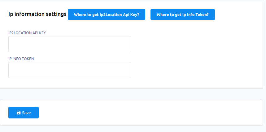 - Select API tab to add IP2LOCATION API KEY and IP INFO TOKEN