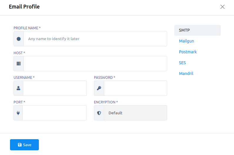 Select Email tab to add an Email sender. To add an email sender, first you have to add an email profile.